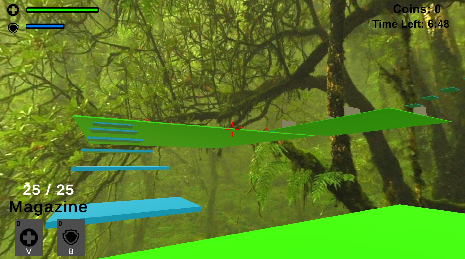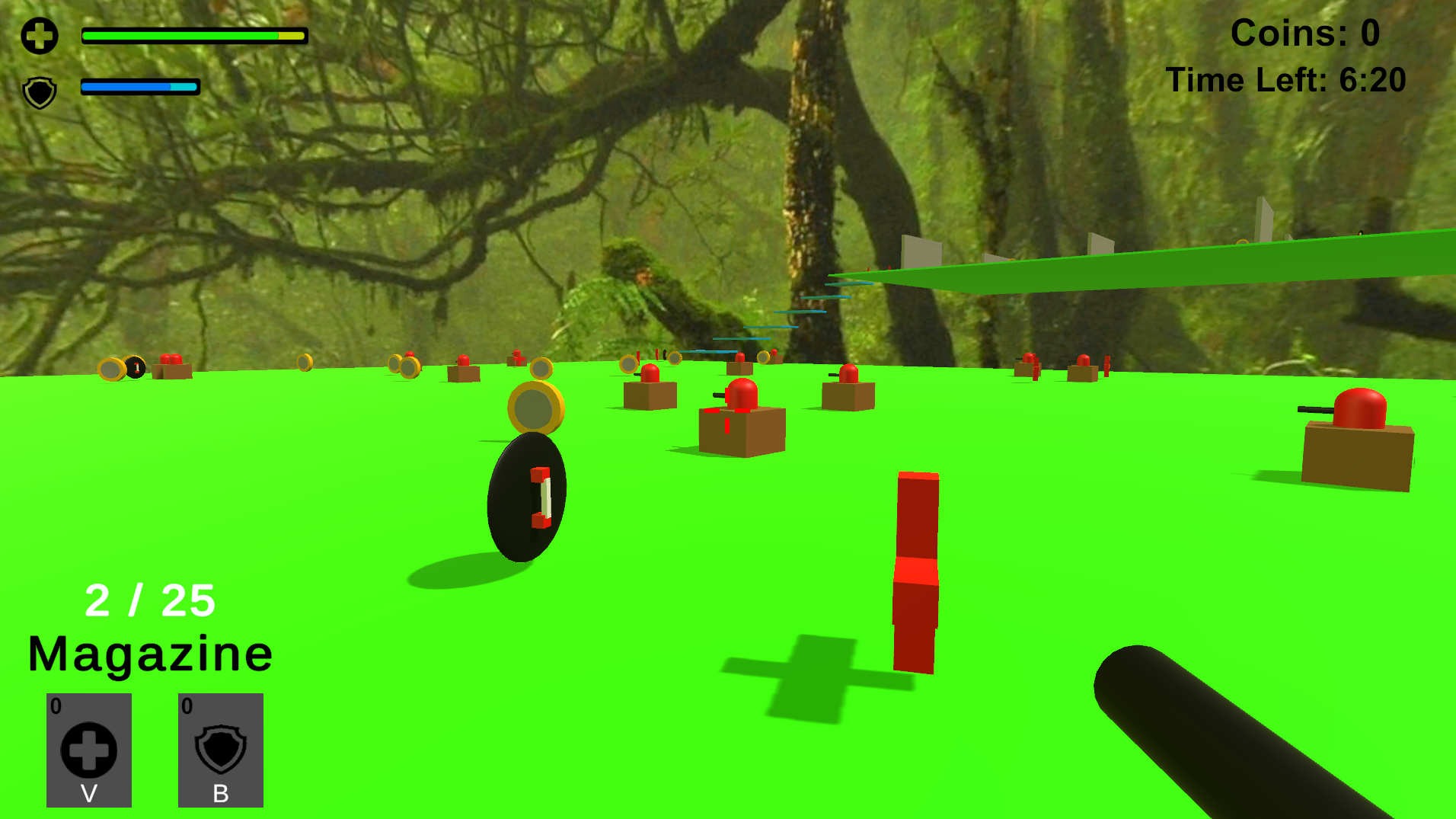 Play as a simple capsule character, jumping, shooting enemies, and trying to survive while collecting coins, heals, and shields. Test your reflexes in fast-paced platforming with a touch of parkour-style movement.